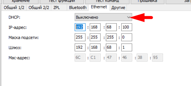 1. Подключить ethernet кабель в принтер и зажать кнопку «Подачи бумаги», пока индикатор на панели не мигнёт один раз, отпустить. Распечатаюся параметры принтера (Self test), в том числе и полученный IP адрес.