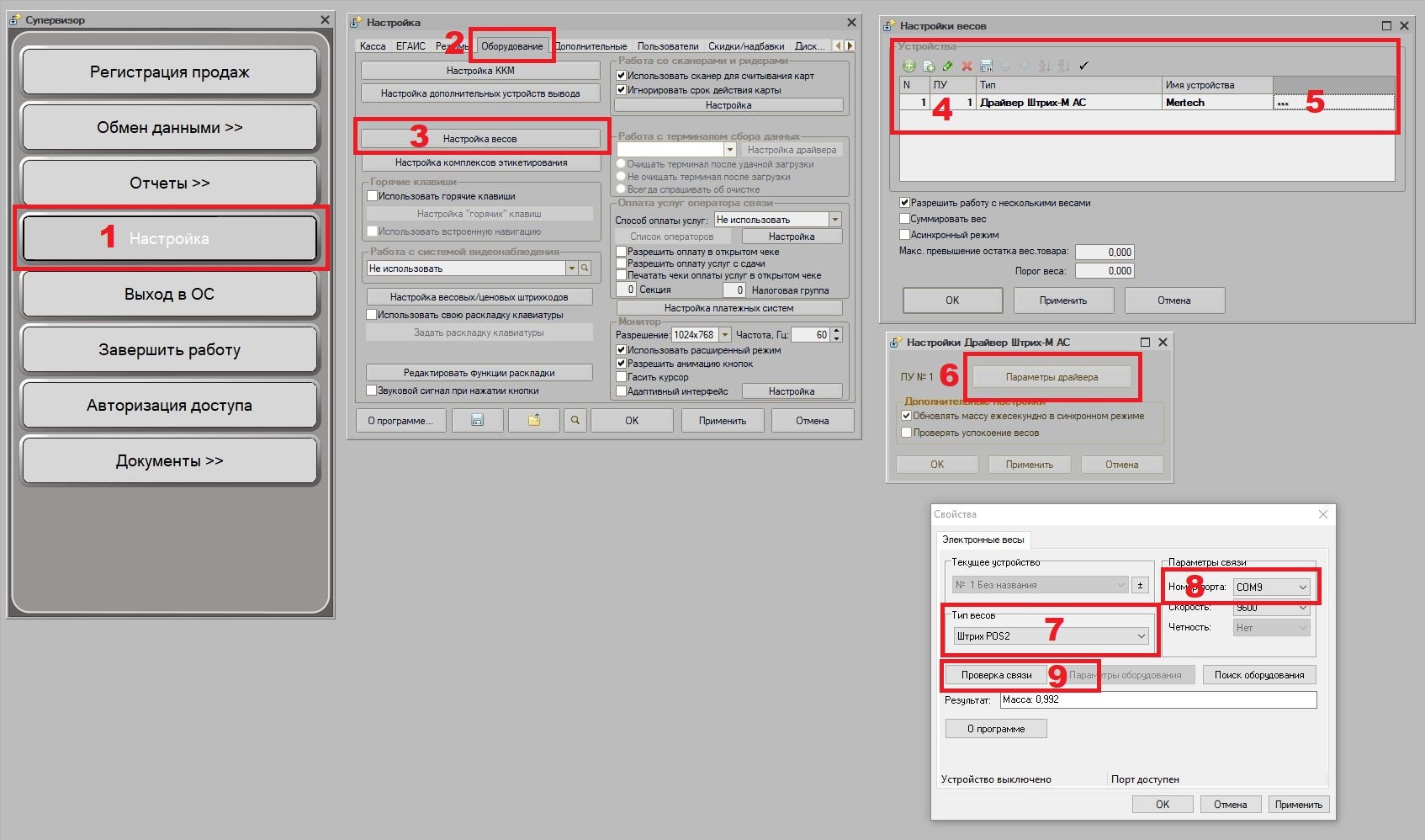 Что бы подключить интерфейсные весы к кассовому ПО ШТРИХ КАССИР 5, необходимо: