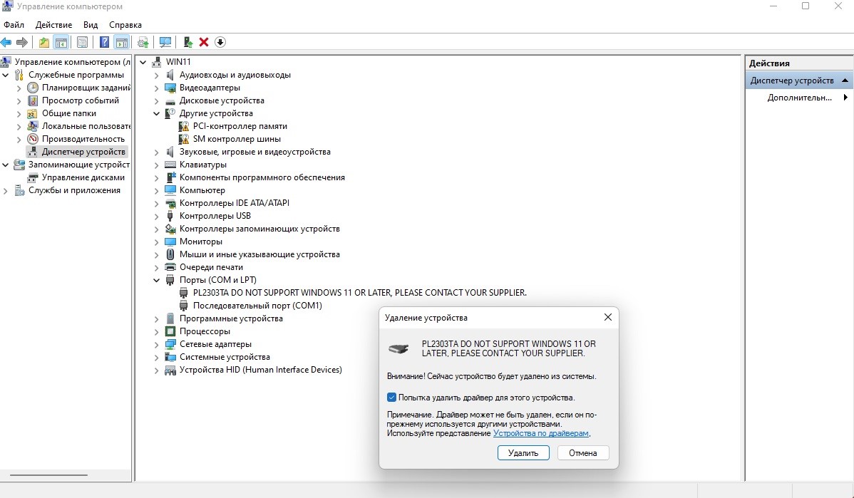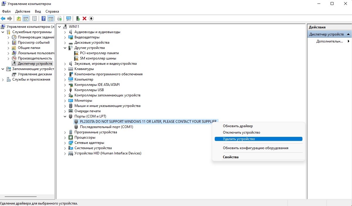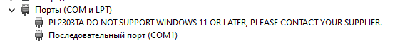 Если предыдущая инструкция не помогла, есть другой вариант решения проблемы с определением Prolific чипа в Windows 11, в частности проблема может быть именно с чипом 2303TA.