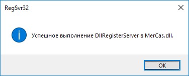 3. После нажатия на кнопку «Ок» и успешном выполнении команды, на экране появится сообщение, об успешной регистрации библиотеки в ОС Windows: