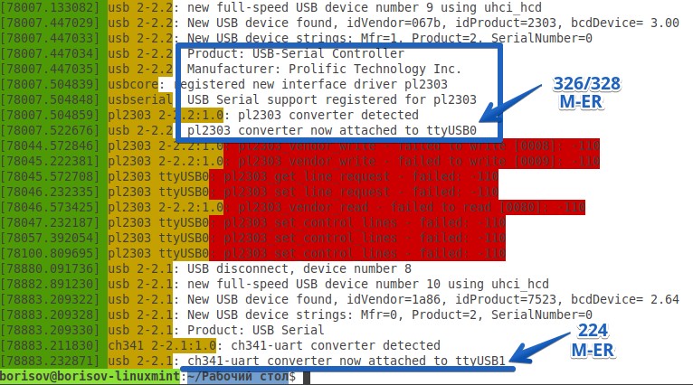 В нашем случае подключены интерфейсные весы M-ER 326 AF Post II к порту ttyUSB0 и M-ER 224 STEEL к порту ttyUSB1.