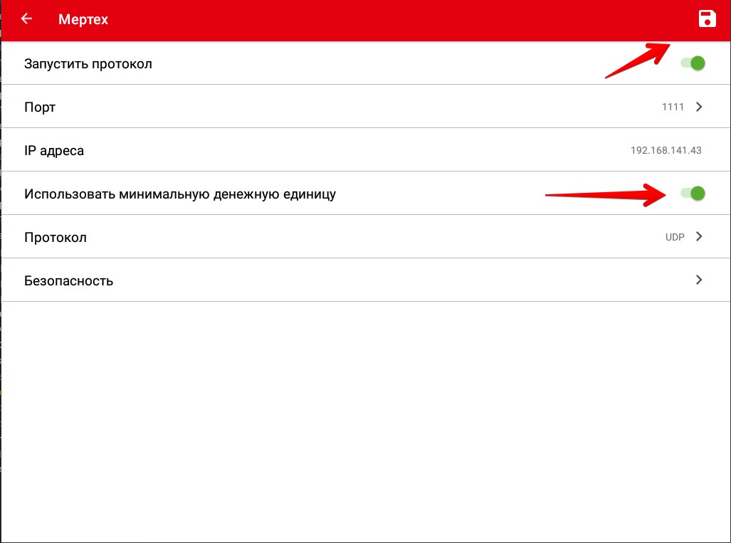 Для сохранения настройки необходимо нажать на значёк дискеты в правом верхнем углу экрана.