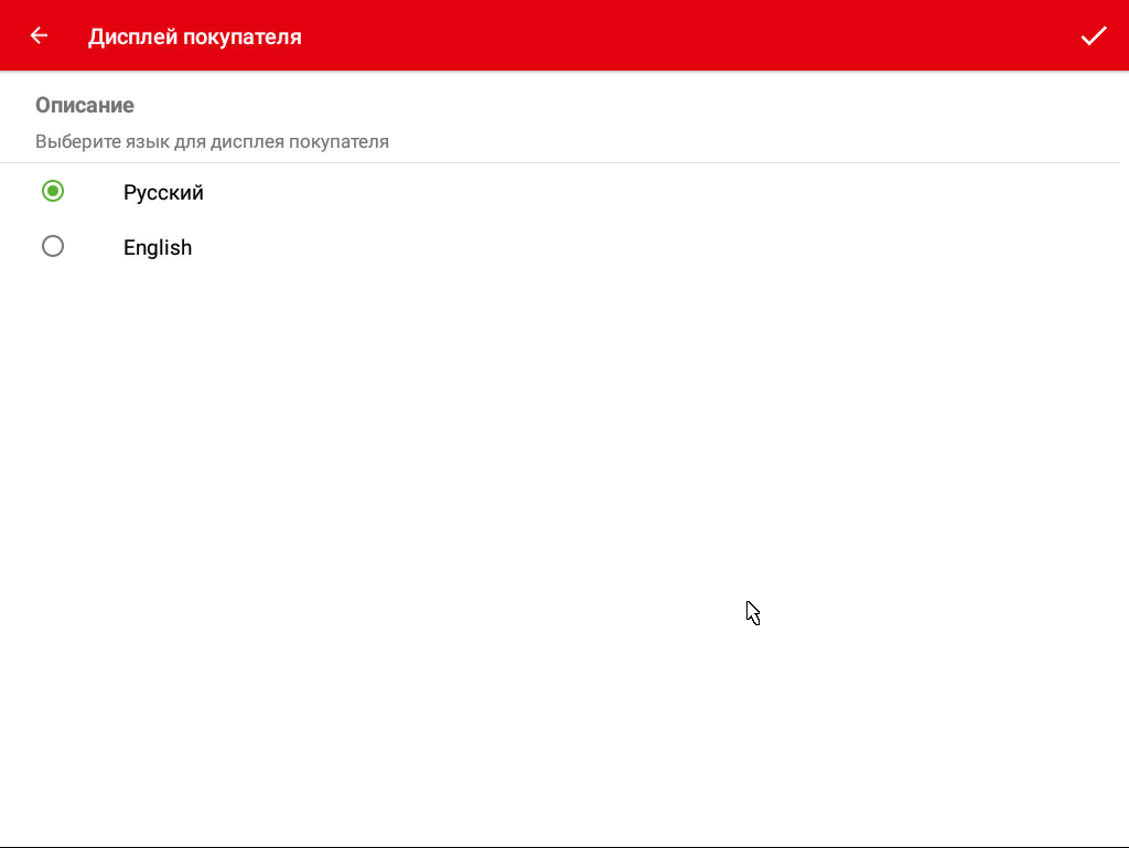 Язык дисплея покупателя - выбор языка для дисплея покупателя.