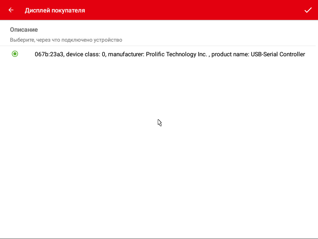 USB-устройство - окно с выбором подключённого USB провода к весам.