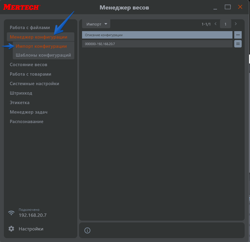 Затем перейдите во вкладку «Менеджер конфигураций», затем «Импорт конфигурации»,