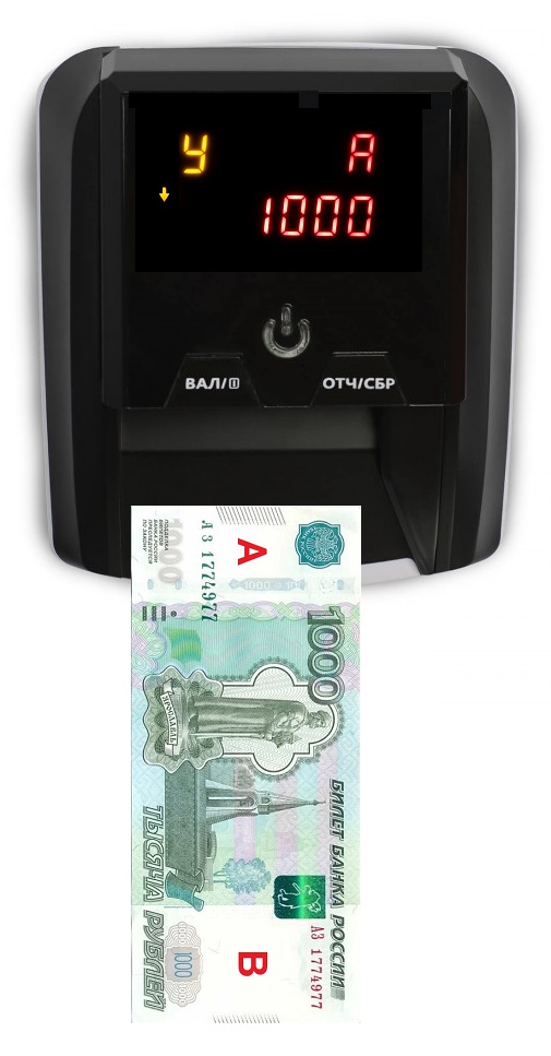 Для изменения стороны банкноты - клавишу ВАЛ.