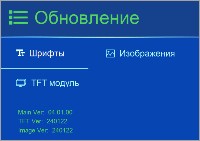 В настройках отображается 3 типа обновления: шрифты, изображения и TFT модуль.