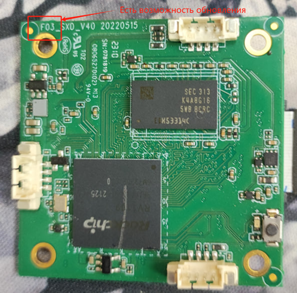 Также, модель можно прочить на чипе платы, пример чипа RK1808, который не подходит для обновления до Rest Api v2 показан на рисунке 6.