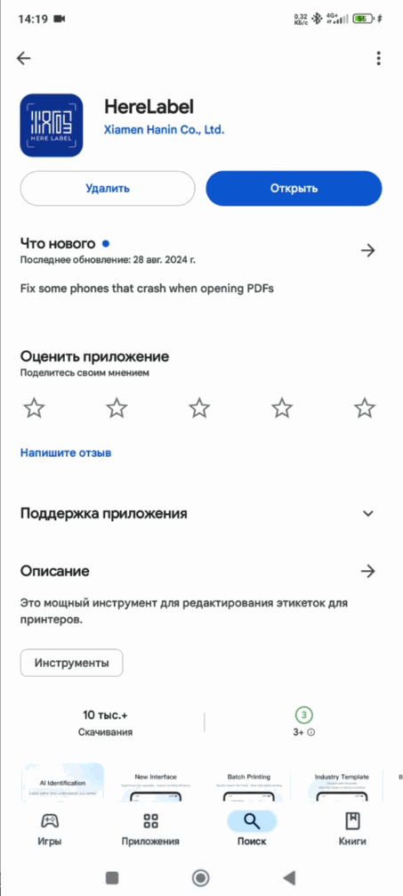 Запуск HereLabel Google Play (скачать apk на сайте) (рис.1)