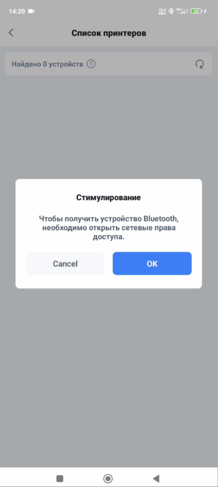 На мобильном принтере включен Bluetooth, установлен протокол CPCL, тип бумаги - этикетки (рис.8)