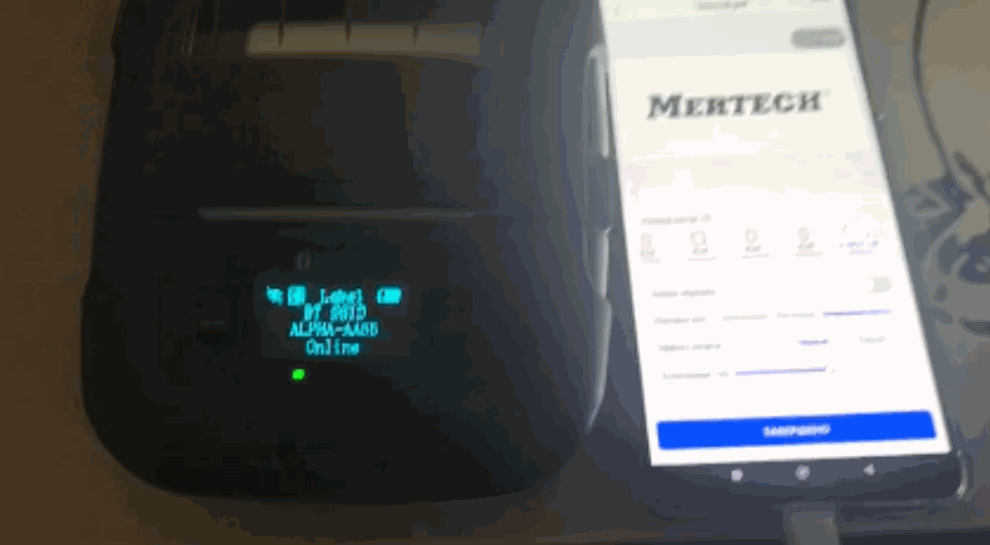 В статье используется Мобильный принтер MERTECH ALPHA (этикетки 58*30мм), смартфон на Android, приложение HereLabel.