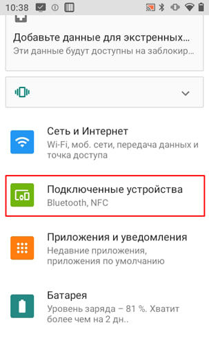 Раздел «Подключенные устройства» в меню настроек (рис.1)