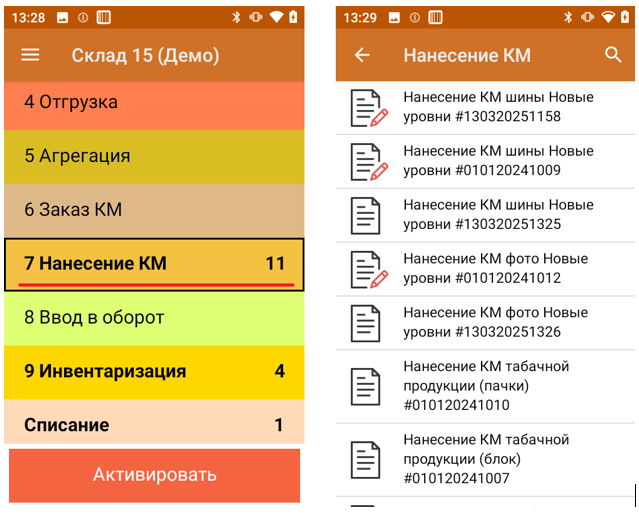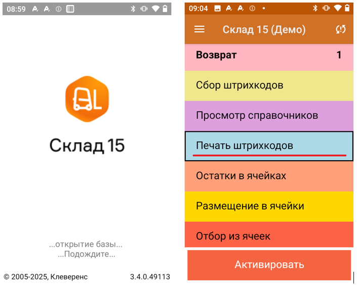 Запустите приложение Склад 15 и выберите «Печать штрихкодов» (рис.10).