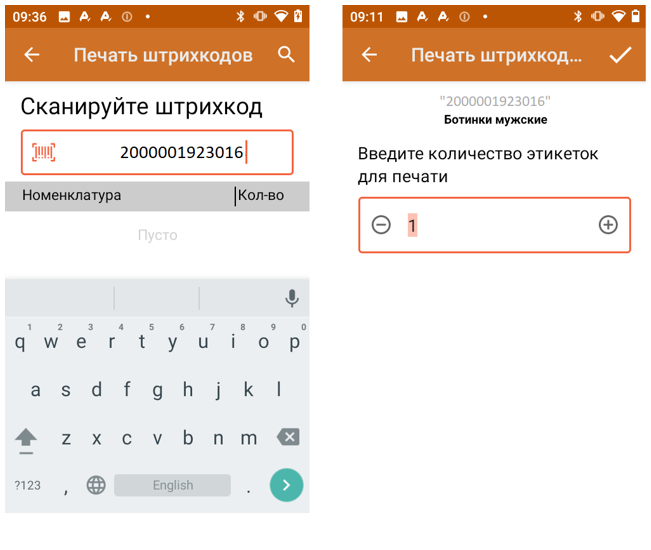 Вернитесь в «Печать штрихкодов», найдите товар и выберите количество этикеток для печати (рис.16).