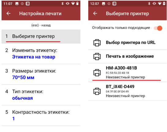 Печать из приложения Магазин 15 и Склад 15 на принтер HM-Z3 (ТСД MERTECH Seuic Q9)