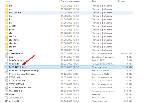 Скачиваем архив с утилитой и распаковываем архив MPRINTUtility.