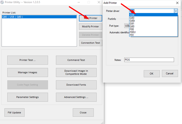 Добавляем нужную модель принтера.