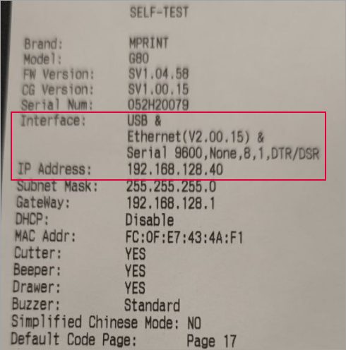 Нажмите кнопку питания и кнопку подачи бумаги. Удерживайте кнопку подачи, пока не напечатается страница самодиагностики. Убедитесь, что DHCP отключен.