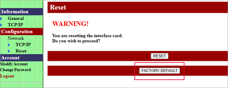 После обновления Ethernet-платы в веб-интерфейсе появиться авторизация. По умолчанию логин: admin, пароль: 123456.
