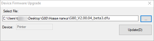 Для обновления принтера требуется файл с прошивкой G80_V2.00.04_beta3.dfu.