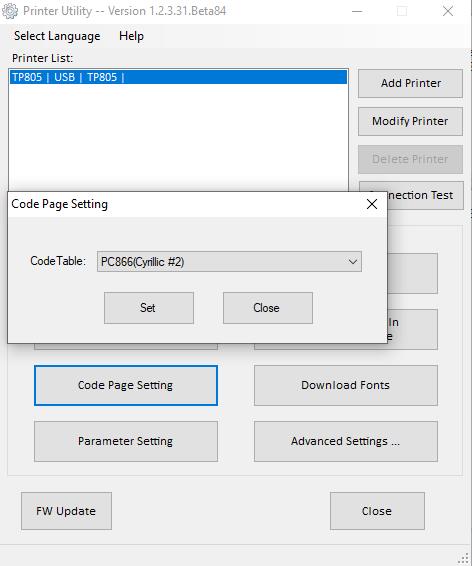 Аналогичная кодовая таблица устанавливается в настройках программного продукта к которому подключается принтер.