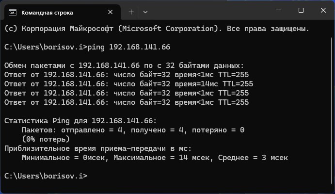 корректный ответ устройства при доступности в локальной сети