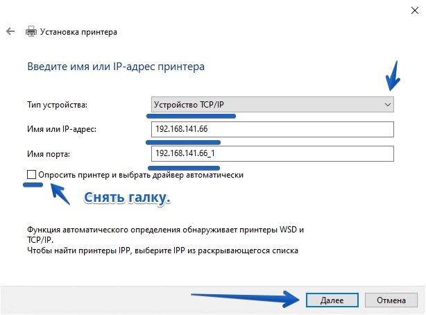 В следующем диалоговом окне выберите Тип устройства -> Устройство TCP/IP