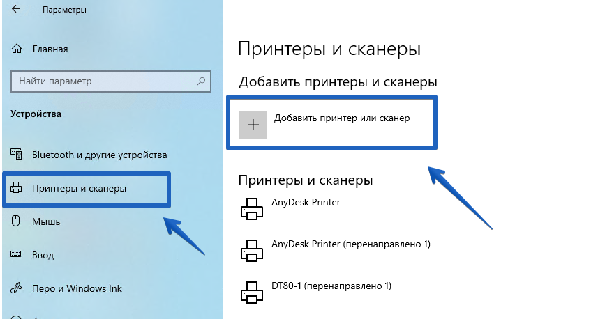 Перейти в раздел Принтеры и сканеры -> Добавить принтер или сканер. Если в предложенном списке не будет обнаружен принтер, выберите Необходимый принтер отсутствует в списке.