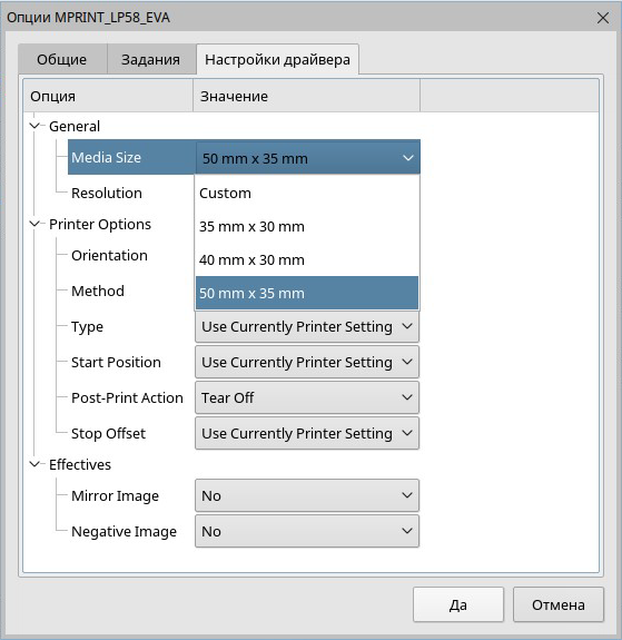Добавление необходимого размера этикеток в драйвер для Linux