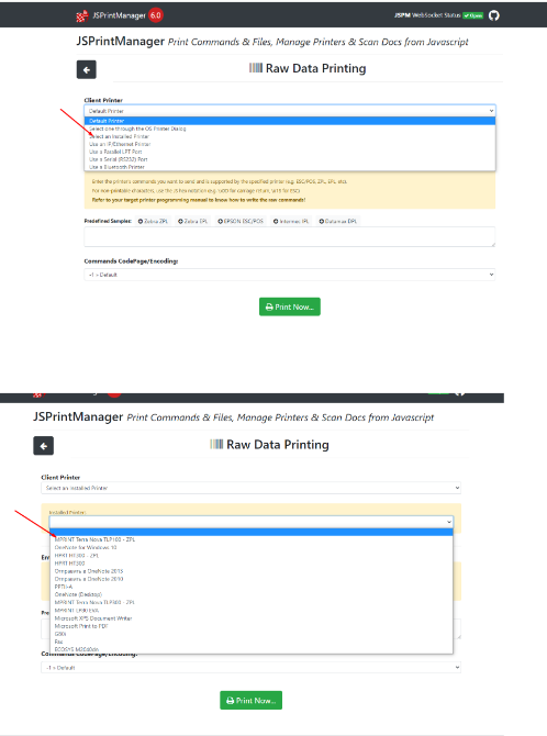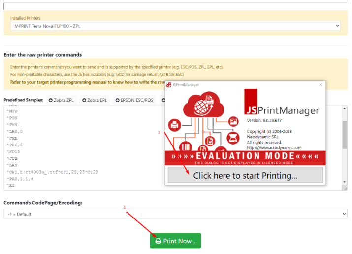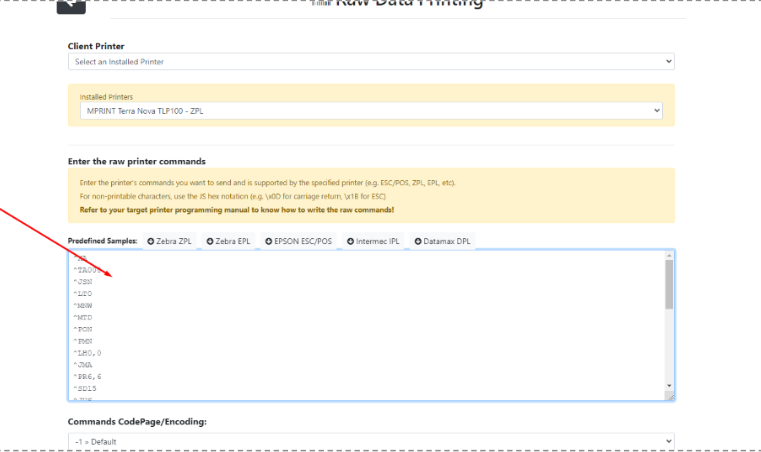 В указанное поле вводите текст из команд для печати по протоколу ZPL
