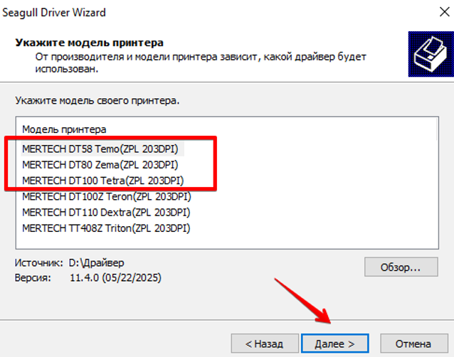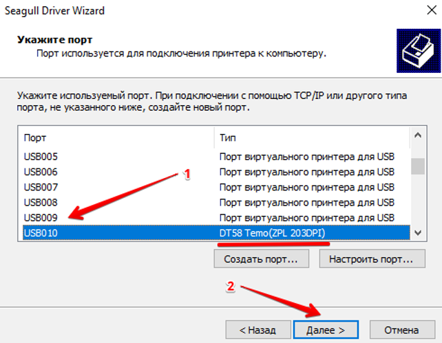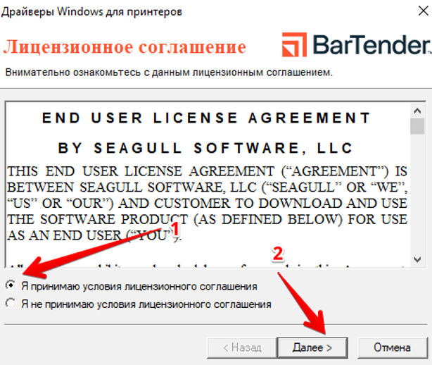 Установка Seagull Driver для принтеров DT58, DT80, DT100