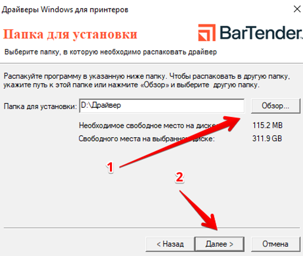 Выберите папку, в которой будут располагаться файлы драйвера, и нажмите «Далее» (рис.2).