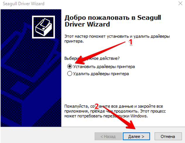 Мастер установки Seagull Driver Wizard (рис.4)