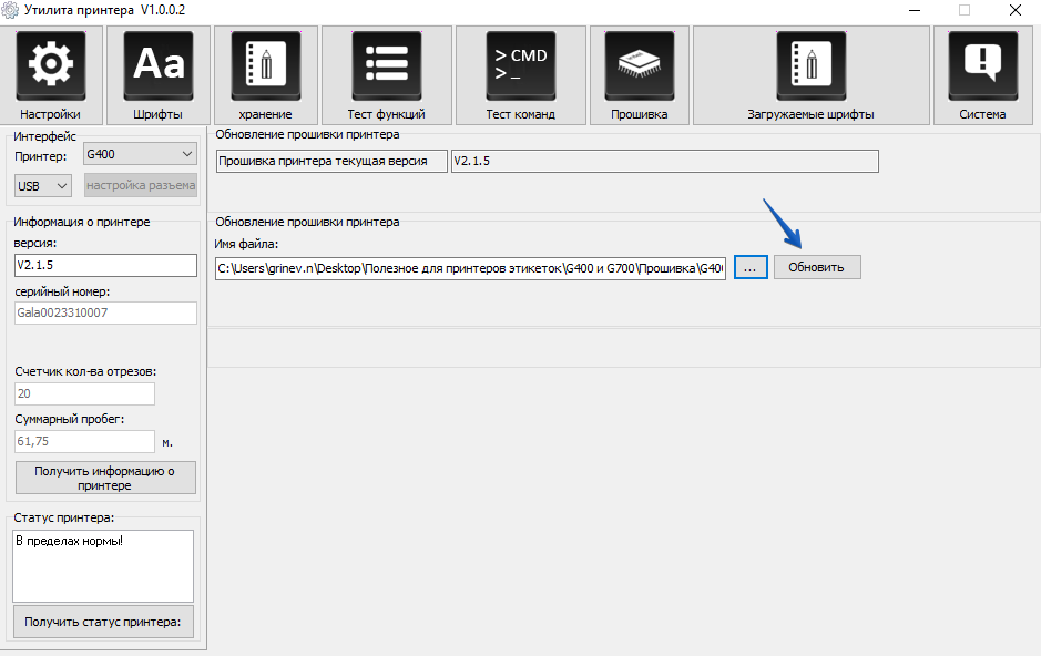 Обновление прошивки принтеров G400/G700