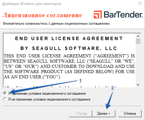 Установите галочку напротив соглашения с условиями лицензионного соглашения и нажмите «Далее» (рис.1).