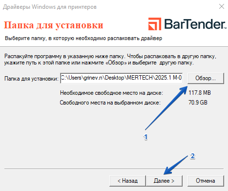 Выберете папку, в которой будут располагаться файлы драйвера, и нажмите «Далее» (рис.2).