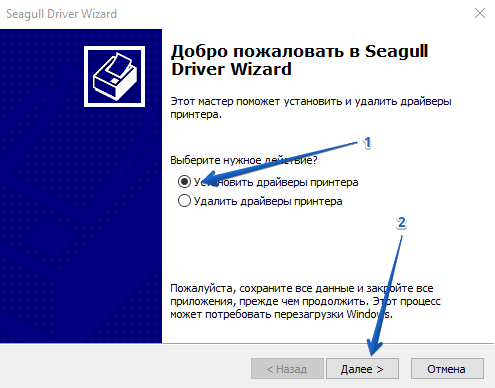 В окне мастера установки выберете «Установить драйверы принтера» и нажмите «Далее» (рис.4).