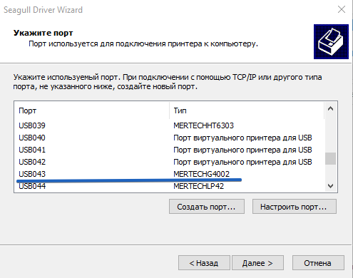 Выберете порт подключения принтера к ПК. В нашем случае «USB43» (рис.8).