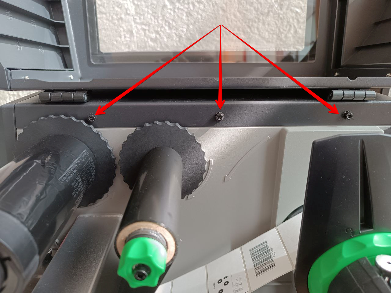 Открутить три винта которыми крышка принтера крепится к корпусу и снять её.