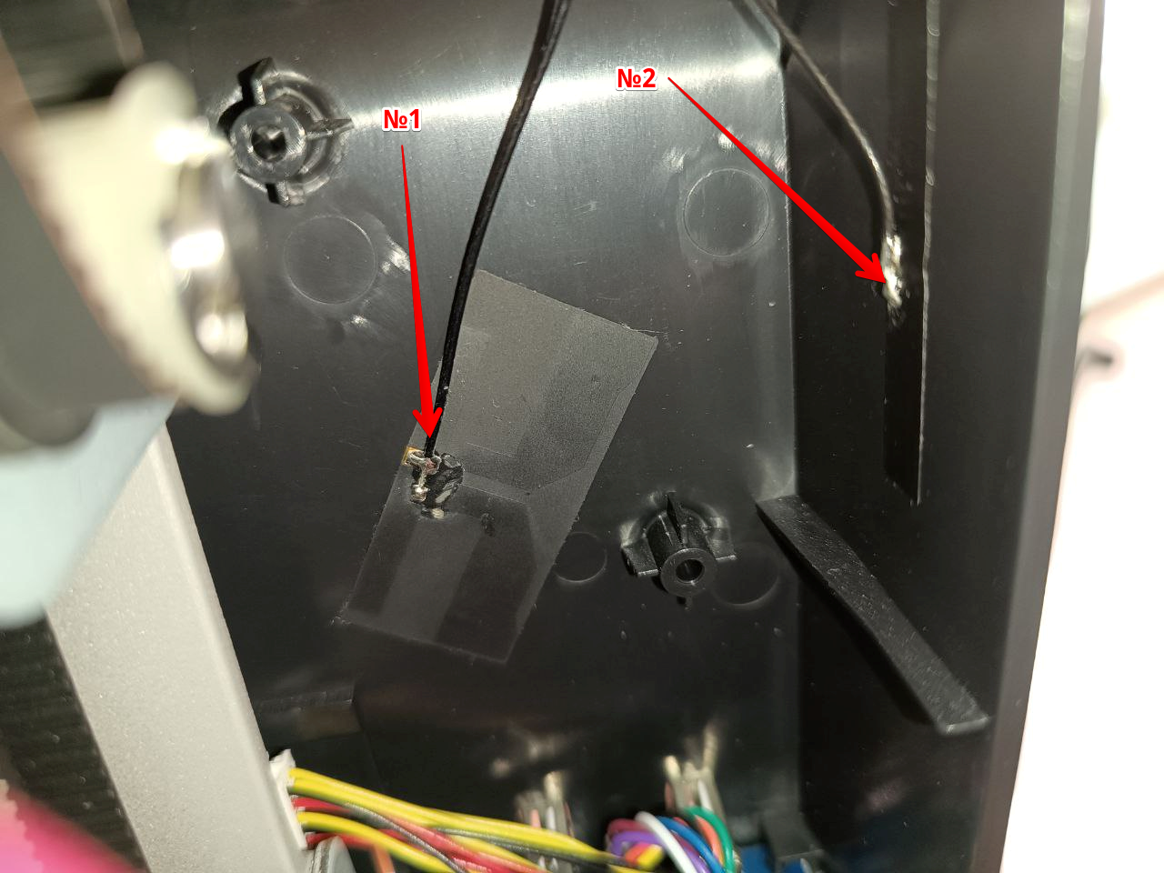 Антенны нужно приклеить только к ПЛАСТИКОВОЙ части корпуса принтера.