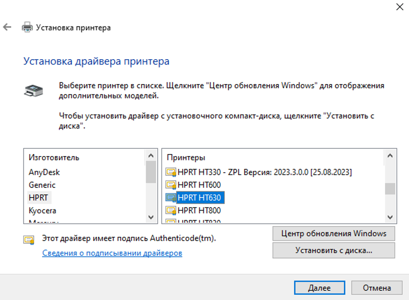 Выберите драйвер, соответствующий вашей модели (HT 600 или HT 630) (рис.12).