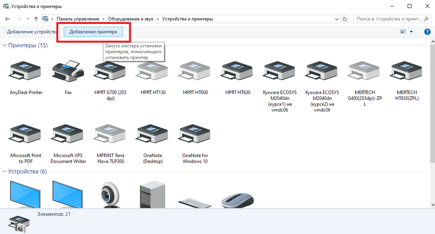 Откройте «Панель управления» → «Устройства и принтеры» → «Добавить принтер» (рис.7).