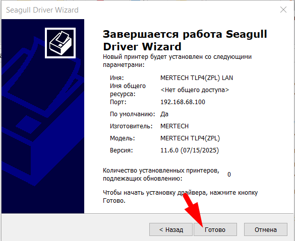 После в настройках, в разделе Устройства и принтеры, появится принтер MERTECH LP4 LAN (рис.5)
