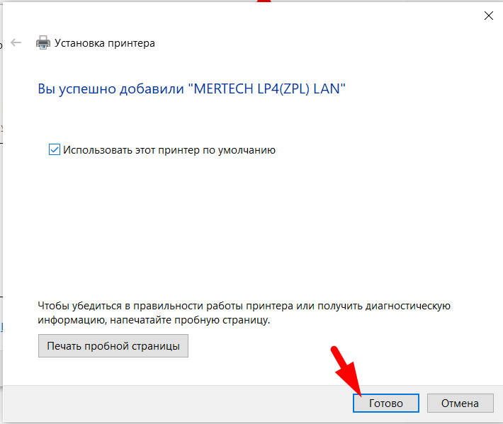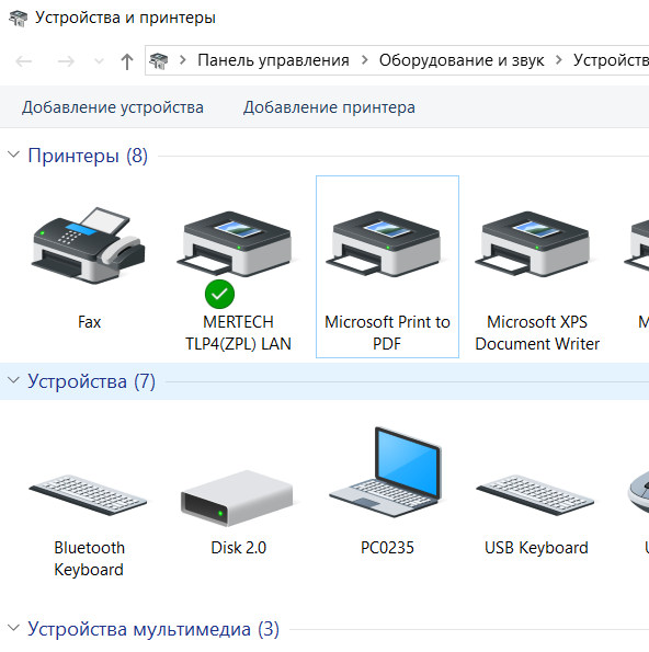 После в настройках, в разделе Устройства и принтеры, появится принтер MERTECH LP4 LAN (рис.8)