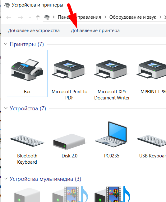 1. Зайти в Пуск - Параметры - Bluetooth и другие устройства – Устройства и принтеры и нажать Добавление принтера (рис.6.)