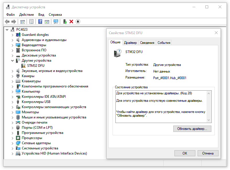 Внимание!!! Если в открывшейся утилите для прошивки принтера, поле Device пустое (рис.6), а в диспетчере устройств появилось устройство, для которого в ОС не нашёлся совместимый драйвер (рис.7) - скачиваем, распаковываем и устанавливаем Драйвер.