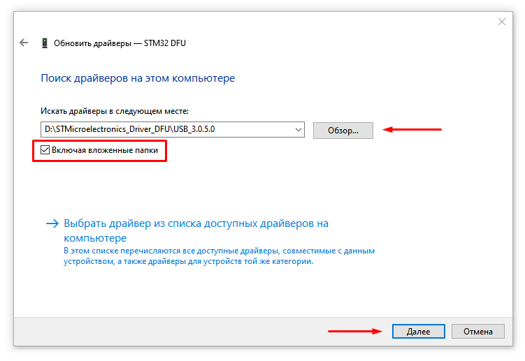 2.3. Укажите папку с распакованным драйвером и нажмите Далее.
