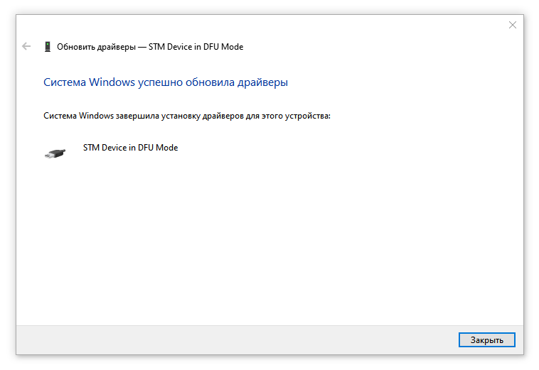 2.4. По окончании процесса установки видим оповещение об успешном обновлении драйвера.