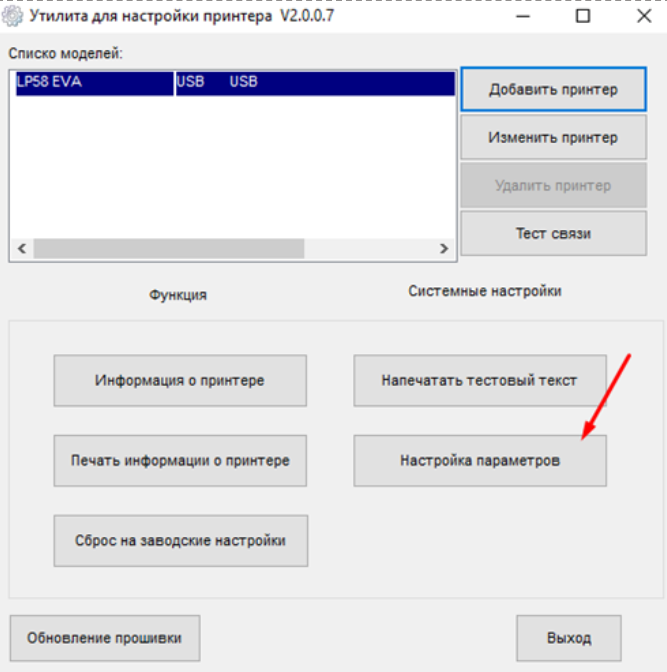 2.Заходим через утилиту в меню «настройка параметров»
