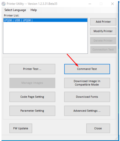 Нажимаем пункт меню «command test»